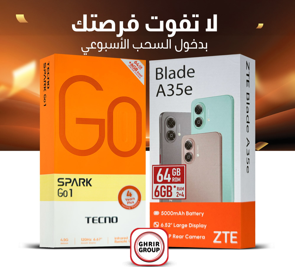 السحب الأسبوعي 1. اشتري جهاز موبايل واحصل على قسيمة لدخول السحب على جائزة الأولى 🔸هاتف Tecno Spark Go 1 أيضاً سيدخل اسمك تلقائياً معنا في السحب على الجائزة الكبرى في نهاية الموسم 2.عند قيامك بأي عملية شراء ( اكسسوارات - خط تركي جديد) أو قيامك بطلب أي خدمة ( تحويل رصيد تركي - صيانة - سوفت وير) واحصل على #قسيمة لدخول السحب على الجائزة الثانية هاتف ZTE A35e