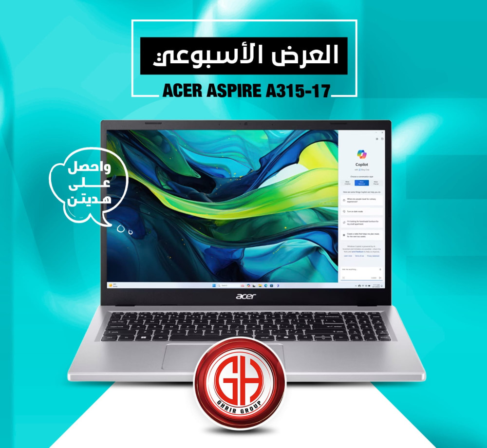 🔥 عرض الأسبوع 🔥💻 لابتوب ACER ASPIRE A315-17🚀 دراسة، أعمال مكتبية، أونلاين، مشاهدة وأداء يومي سريعكل اللي بتحتاجه بجهاز عملي وشاشة كبيرة ومريحة ✨واحصل على هديتين مجاناً 🎁🎁🖱️ ماوس + 🎒 حقيبة لابتوبسعر العرض 500 $⚙️ المواصفات:🔹 Intel Core i7-1255U – أداء سريع وموفّر للطاقة ⚡🔹 8GB RAM – أداء مستقر وقابل للترقية🔹 512GB SSD – سرعة عالية وإقلاع فوري 🚀🔹 Intel UHD Graphics – للاستخدام المكتبي واليومي🔹 شاشة 15.6” FHD – وضوح ممتاز